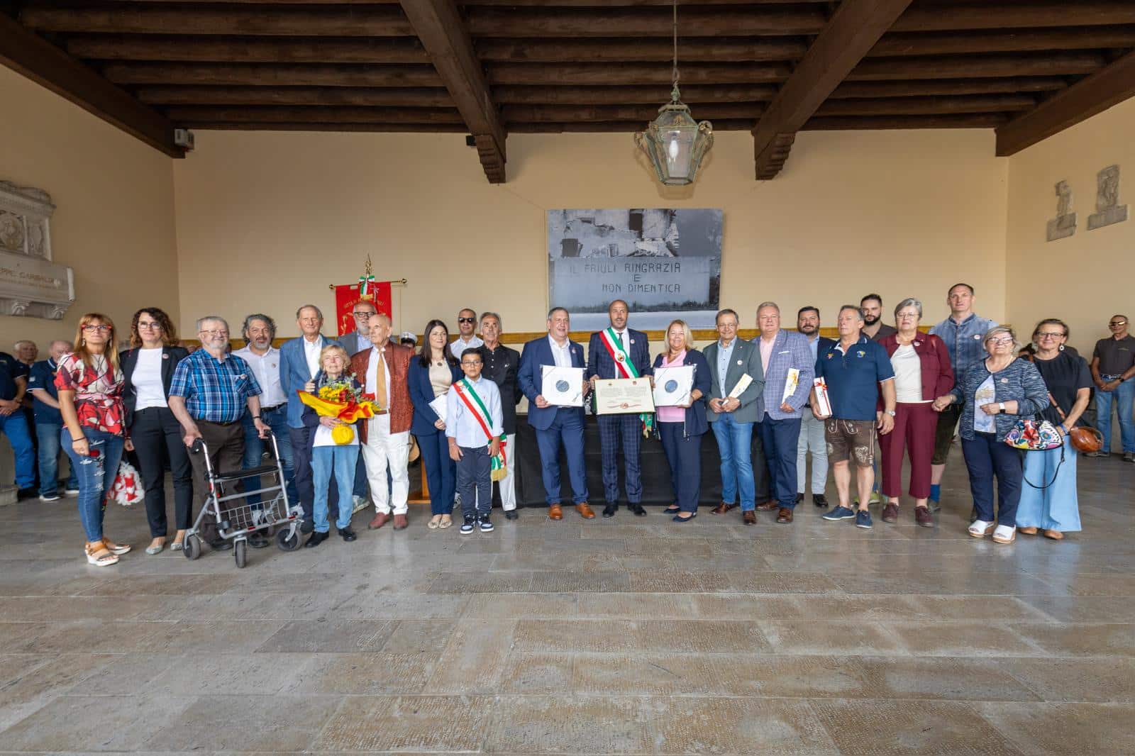 Il rapporto tra Gemona e Laakirchen ha radici lontane. Era il 1976, quando il terremoto che devastò il Friuli portò con sé dolore e distruzione. In quell’occasione due cittadini austriaci, Josef Thallinger (scomparso nel 2023) e Johann Lackerbauer, frequentatori affezionati della nostra terra, non si sono persi d’animo e hanno mobilitato i loro concittadini per offrire aiuto concreto. Insieme ad altri volontari raggiunsero Gemona, contribuendo alla costruzione di alloggi per i terremotati e stringendo un legame che non si è mai più spezzato. Proprio la presenza di Johann Lackerbauer alle celebrazioni di quest’anno ha reso ancora più toccante il ricordo di quelle giornate difficili, trasformando la commemorazione in un momento di memoria viva.