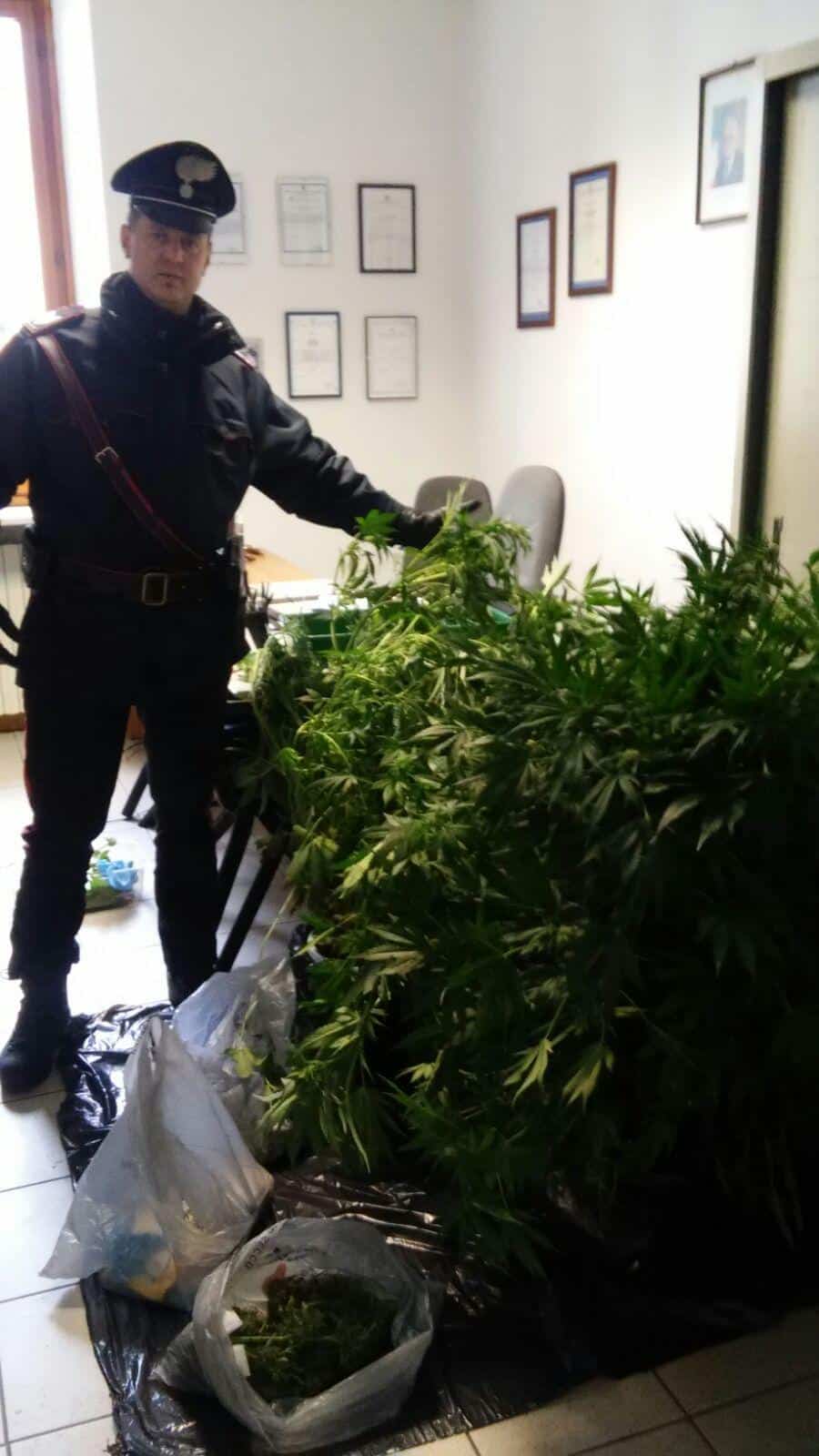 All’interno di una di queste serre, in piena lavorazione, sono state inoltre rinvenute 8 piante dello stesso stupefacente, già in avanzato stato di maturazione, del peso complessivo di oltre 4.600 grammi. Gli investigatori dell’Arma hanno rinvenuto in varie stanze della casa altri 425 grammi di marijuana già essiccata, due bilancini di precisione, 1.340 euro ritenuti provento dell’attività di spaccio, oltre a numerosi piccoli contenitori di terriccio già seminati con i semi di marijuana (altri semi sono stati rinvenuti ancora confezionati in un blister).