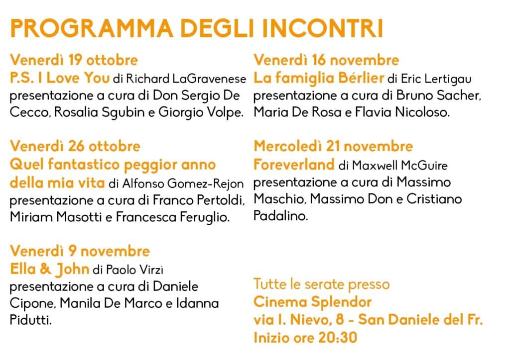 L’iniziativa, che vede la collaborazione del Comune di San Daniele, si svolgera al Cinema Splendor, con cinque appuntamenti in programma alle 20.30.