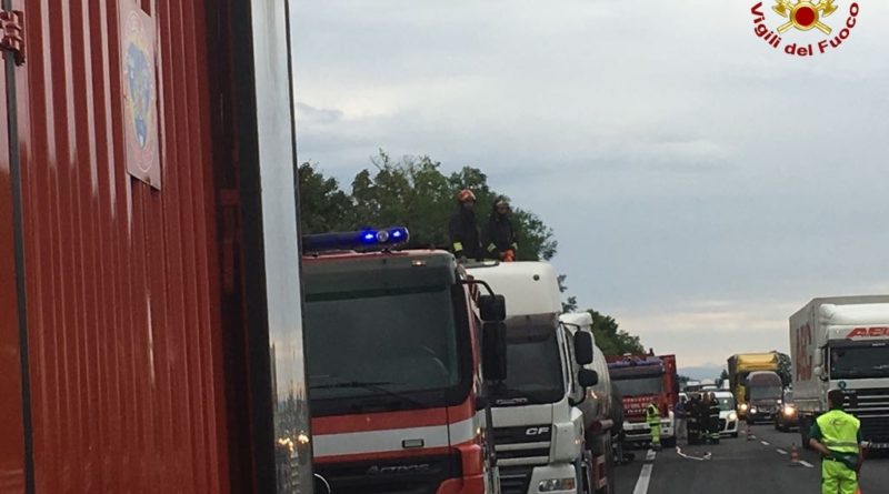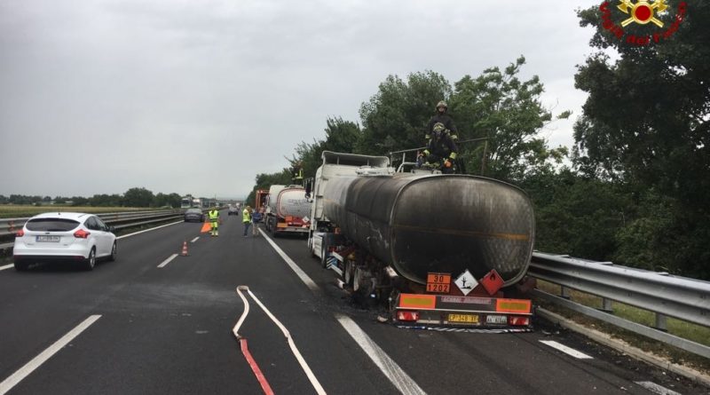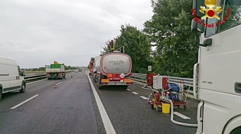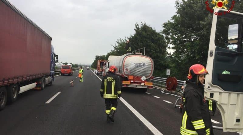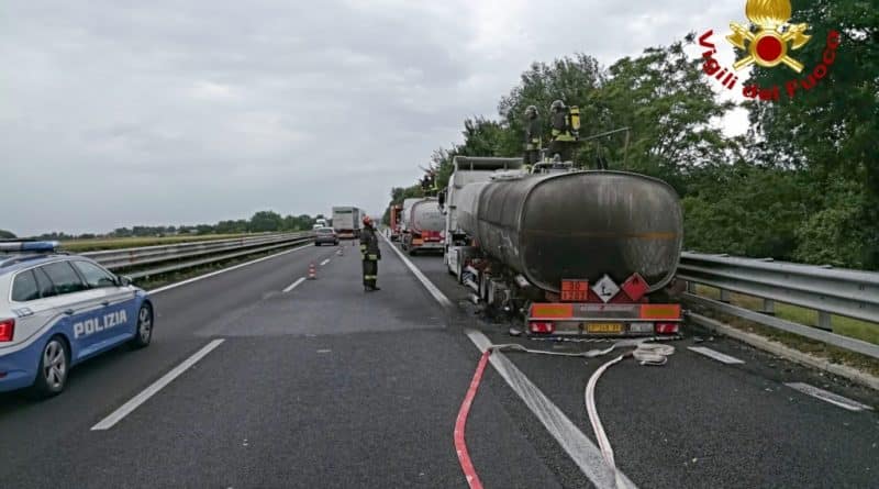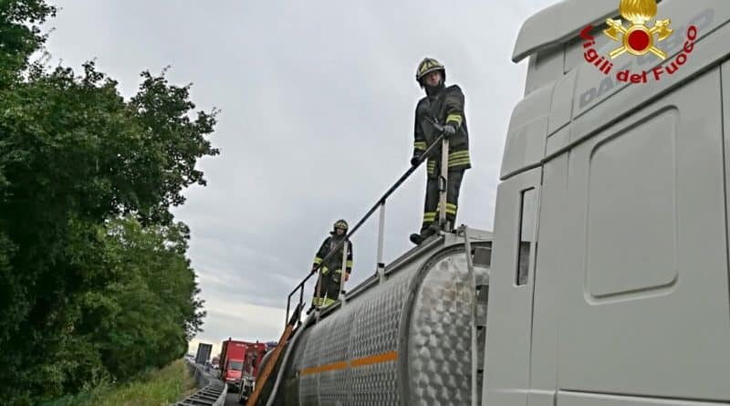 Cisterna di gasolio a fuoco in A4. Vigili del Fuoco in azione. Guarda il video