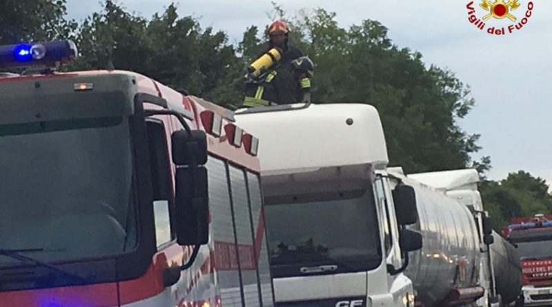Notte impegnativa sulla A4, per un veicolo cisterna che trasportava gasolio e che ha preso fuoco – erano circa le 23 e 30 – nel tratto Villesse – Palmanova in direzione Venezia. La causa probabilmente è un’improvvisa combustione che ha riguardato le gomme del mezzo. Il conducente si è accorto tempestivamente del problema ed è riuscito a spostare il veicolo in corsia di emergenza. Immediato l’intervento dei Vigili del Fuoco di Gorizia e del personale di Autovie Venete. Chiusa l’entrata in A4 da Villesse (in direzione Venezia) e traffico bloccato per una trentina di minuti, fino allo spegnimento dell’incendio. Nonostante l’ora, il traffico era molto sostenuto e quindi si sono formati subito circa tre chilometri di coda.