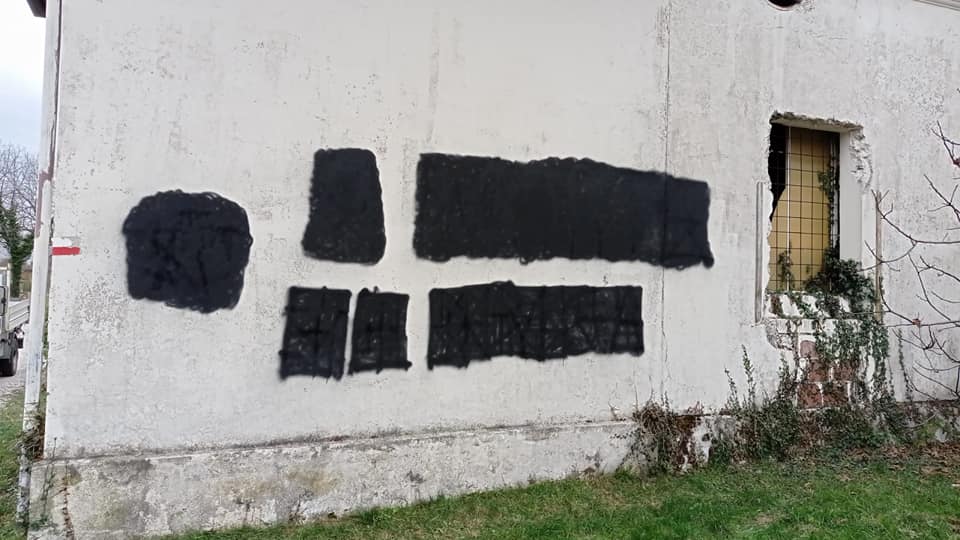 Sono stati i Carabinieri a informare l’Amministrazione Comunale di quanto avvenuto presumibilmente nel corso della notte, con il vicesindaco Lorenzo Tiepolo che ha provveduto di persona a cancellarle assieme agli operai del Comune.