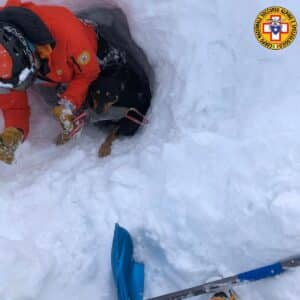 Per i soccorritori è indispensabile mettere in pratica gli imbarchi e gli sbarchi dall’elicottero in ambiente innevato con l’attrezzatura da scialpinismo e i ramponi pronti eventualmente da indossare ai piedi. Per i cani lo spostamento in elicottero può essere comunque un elemento perturbante ed è quindi indispensabile abituarli fin da cuccioli affinché una volta sbarcati si focalizzino subito sull’obiettivo. Sabat0 hanno preso parte all’esercitazione tre bordercollie, due kelpie, due pastori tedeschi e un malinois. Cinque di questi hanno lavorato su buche profonde con uno o più sepolti, mentre i tre cani più giovani, due dei quali di soli cinque mesi, hanno iniziato con buche più semplici, esercitandosi con figuranti e tecniche di gioco che stimolano le loro capacità di ricerca. Quest’ultima è consistita nel cercare un oggetto di tela nella neve e nell’ iniziare a scavare l’umano sepolto con una ricompensa finale.