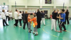 Sempre interessante l’incontro annuale di arti marziali delle associazioni Libertas. Una cinquantina fra maestri, allievi esperti e meno esperti, di fronte ad un folto pubblico, si sono messi a confronto provando le rispettive discipline. Il tai chi del maestro Francesco D’Ursoha aperto le danze; per proseguire con la sferzata di energia della gym-boxe dell’istruttrice Laura Paronit. Roberto Cavicchioli ha coinvolto tutti in una prova di shaolin. Fra le novità, il karate americano goji riu con il maestro Roberto Vido, e persino la scherma storica della Sala d’Arme Achille Marozzo. Per la prima volta ha partecipato anche l’Aikido Yoseikan, con una dimostrazione di kata di coppia con le spade guidata dal maestro Maurizio Degano.