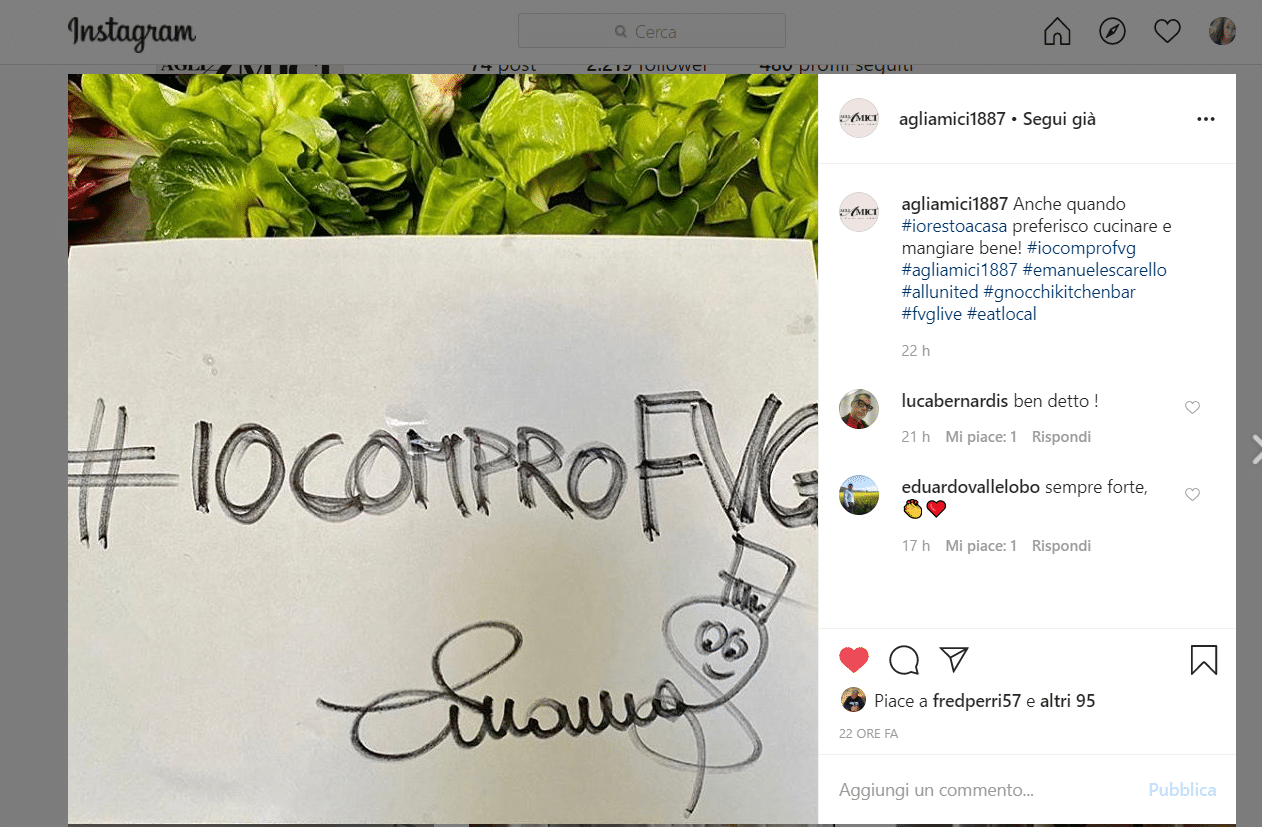 Ittima partenza per la campagna di sensibilizzazione #iocomproFVG lanciata dall’agenzia di cluster Agrifood FVG, in accordo con l’assessore regionale Stefano Zannier, per dare ‘ossigeno’ al tessuto agroalimentare del Friuli Venezia Giulia messo in ginocchio dall’emergenza sanitaria. A sostenere l’invito per una spesa consapevole è intervenuto subito il governatore Massimiliano Fedriga assieme allo stesso assessore Zannier. Nelle fila dei politici che si sono fatti fotografare con l’hashtag virale anche l’Europarlamentare Marco Dreosto. Ma la campagna è stata accolta da svariati settori: tra i VIP che hanno postato sui social si contano anche il direttore marketing di PromoturismoFvg Bruno Bertero e il celebre chef stellato Emanuele Scarello del ristorante Agli Amici di Godia.