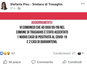 Tra i casi di nuove positività c’è un residente in comune di Trasaghis come ha specificato il sindaco Stefania Pisu sulla sua pagina ufficiale fb