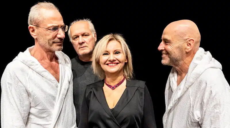 Nel frattempo, il terzo, telefona, invia messaggi in un crescendo parossistico che accompagnerà tutto lo spettacolo. Arriverà? Senza di lui l’affare non si può concludere. Finalmente vengono raggiunti dalla responsabile del luogo che, stranamente, appare loro sconosciuta, subentrata per un repentino cambio di gestione. Tutto sembra bizzarro e paradossale in lei: il modo di porsi, i trattamenti proposti, il metodo folle di pagamento.
