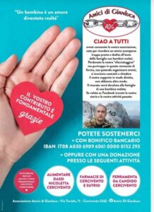 “Ci teniamo a ringraziare il Comune e tutte le associazioni del nostro paese che ci hanno sempre supportato e aiutato durante le nostre manifestazioni e tutte le persone che hanno sempre partecipato”, aggiungono gli Amici di Gianluca.