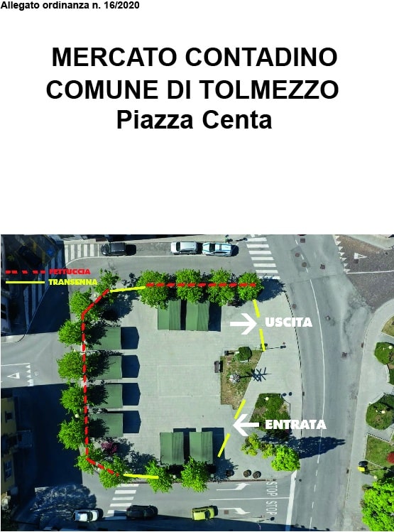MERCATO CONTADINO. L’iniziativa, gestita dalla Nuova Pro Loco di Tolmezzo, si svolgerà, come consuetudine, nell’area perimetrata di piazza Centa con ingresso in corrispondenza del varco posto sul lato sinistro (cinema David) mentre l’uscita sarà sulla destra (Sisal Matchpoint). I volontari della Pro loco vigileranno sul regolare accesso all’area del mercato limitando gli ingressi in caso di presenza in contemporanea di più di 8 persone.