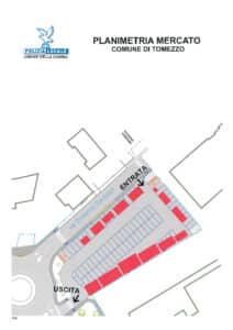 DISPOSIZIONI COMUNI. Per entrambe le aree di vendita l’orario di apertura è fissato dalle 8 alle 12: a partire da quest’ora NON sarà più possibile accedere all’area del mercato da parte di nuovi clienti ed entro le 13,30 dovrà essere lasciata libera. La merce posta in vendita dovrà essere confezionata esclusivamente ad opera del venditore che dovrà mettere a disposizione del cliente soluzione e gel disinfettante per la sanificazione delle mani (per il mercato contadino questo obbligo è in capo al gestore). Per venditori e clienti è obbligatorio utilizzare guanti monouso nonché mascherine o altra protezione a copertura di naso e bocca. Tali presidi di sicurezza potranno essere messi a disposizione dei clienti che ne saranno sprovvisti. Potrà entrare un solo componente per nucleo familiare, eventualmente accompagnato da un minore di anni 14 che non verrà computato ai fini della capienza. Prima dell’inizio delle operazioni di vendita, ogni operatore commerciale (per il mercato contadino l’operazione verrà fatta dalla Pro Loco in collaborazione con i venditori) dovrà porre a terra apposita segnaletica finalizzata a tenere distanziati i clienti dal banco e fra loro.