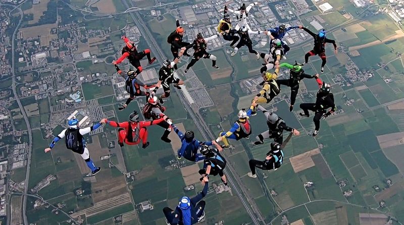 Hanno saltato in 23, stretti in formazione “hup”, da una quota “monstre” di 5200 metri sul livello del mare. Si sono lanciati nel vuoto, raggiungendo una velocità media di 266 km/h. E hanno raggiunto il loro obiettivo, mettere a segno un nuovo record italiano. Il precedente infatti si fermava a quota 19 persone. E in questo gruppo di folli paracadutisti, tutti italiani, c’è anche un friulano: Davide Oruzio, 37 anni, di San Vito di Fagagna, nella vita imprenditore ed agente nel settore del food.