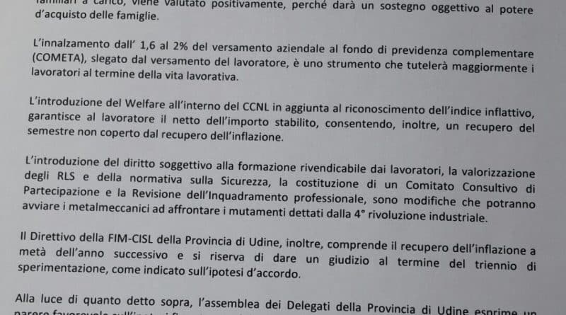 Dalla Fim Cisl di Udine soddisfazione per il rinnovo del contratto dei metalmeccanici