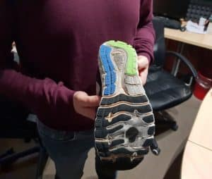 Riccioni ha percorso a piedi il tragitto di 2200 km da Venzone a Santiago di Compostela, concluso dopo 83 giorni e seguito settimanalmente da Radio Studio Nord (nella foto una delle scarpe di Daniele si dimostra decisamente “provata” dall’utilizzo).