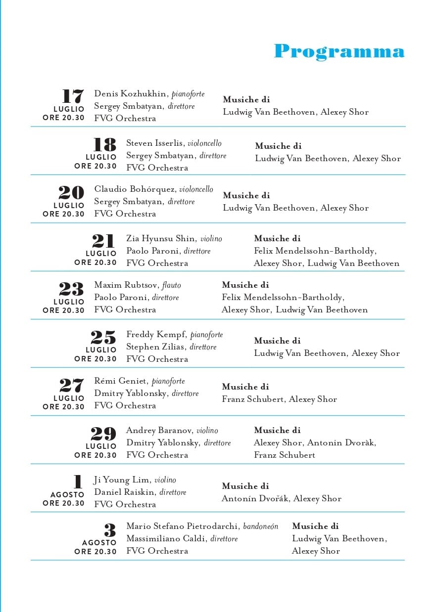 “La scelta di dare vita al festival a Tolmezzo è importante poiché da un lato valorizza la montagna friulana e, dall’altro, rinsalda il vincolo esistente tra il soggetto musicale e il territorio che è parte attiva della compagine societaria. Inoltre, sono compiaciuta del programma messo a punto per questa rassegna: il modo migliore per far crescere il pubblico è quello di proporre programmi che accostino a brani sinfonici molto popolari e conosciuti dalla gente, altri meno noti ma di grande valore artistico. A ciò si aggiungono in questa circostanza anche nuove composizioni, consentendo così a giovani talenti di crescere e mettersi in mostra. La Fvg Orchestra – ha concluso Gibelli – sarà uno dei soggetti culturali che già da quest’anno ci accompagnerà nel percorso di avvicinamento a Gorizia 2025 capitale europea della Cultura. Su di loro faremo affidamento quale punto di forza del nostro programma musicale”.
