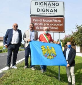 Con cinque targhe toponomastiche in lingua friulana collocate in altrettanti punti di accesso al paese, Dignano da oggi ricorda le origini di Jacopo Pirona, autore del primo vocabolario della lingua friulana.
