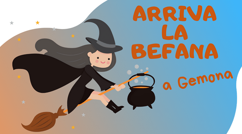 Ritrovo alle ore 10.30 all’ingresso dell’Ufficio Turistico, con il programma che prevede “La storia della Befana”, l’arrivo della Befana per distribuire le calze ai bambini presenti, il brindisi augurale con la Befana stessa, il Comitato Borgate del Centro Storico e l’associazione pro loco Pro Glemona.