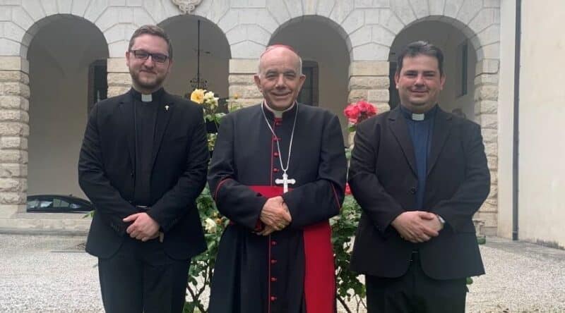 (da sinistra don De Nardo, l’arcivescovo Mazzocato e don Puntel)