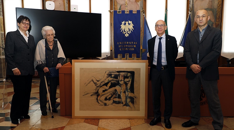 L’atto di donazione è stato sottoscritto a Palazzo Antonini Maseri alla presenza delle donatrici, del rettore Roberto Pinton e del presidente della Commissione patrimonio artistico dell’Università, Alessandro Del Puppo, docente di Storia dell’arte contemporanea del Dipartimento di Studi umanistici e del patrimonio culturale.