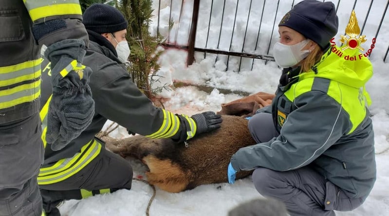 Due cervi salvati dai Vigili del Fuoco di Tarvisio