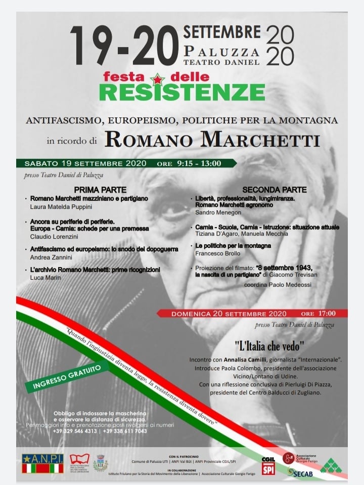 In occasione dell’ottava edizione della “Festa delle Resistenze”, l’Anpi Val But e l’associazione culturale “Giorgio Ferigo” organizzano un convegno dedicato alla figura di Romano Marchetti, partigiano, europeista, agronomo e sostenitore dello sviluppo dei territori montani.