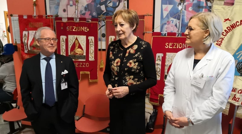 La campionessa veronese si è recata anche al reparto trasfusionale dell’Ospedale, dove ha parlato con la responsabile Cristiana Gallizia e il direttore del Dipartimento Medicina Trasfusionale Area Vasta Udinese Vincenzo De Angelis, presenti le delegazioni carniche dei donatori (nella foto di copertina).