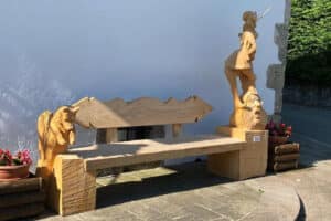 Due nuove panchine artistiche arricchiscono l’arredo urbano di Sutrio, affiancandosi alle molte altre sculture realizzate negli ultimi anni e collocate negli angoli più suggestivi del paese, a sottolineare il profondo e antico legame con la lavorazione del legno a cui erano dediti i suoi abitanti. Una tradizione che è arrivata fino ai giorni nostri, a cui si rende simbolicamente omaggio ogni anno, la prima domenica di settembre, con la grande e frequentatissima festa di Magia del Legno.