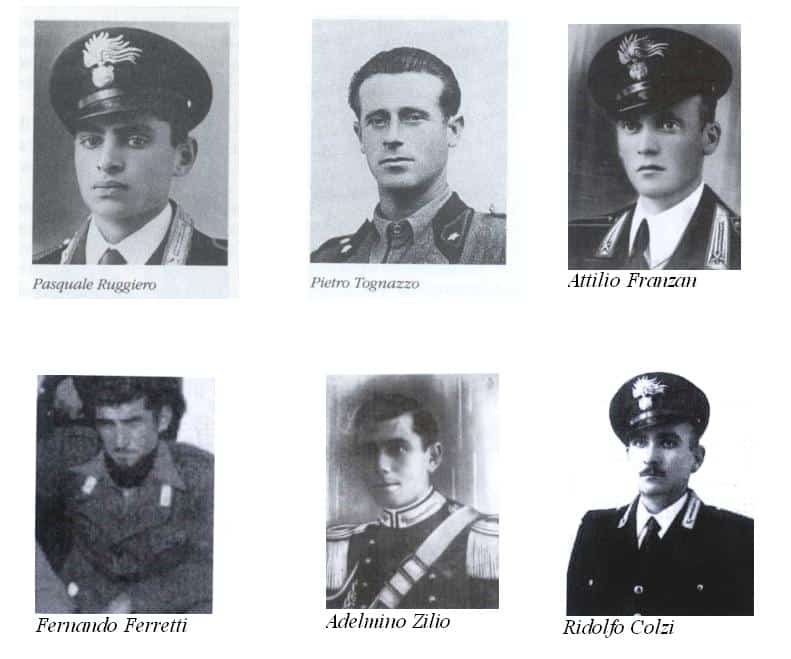 Il Vice Brigadiere Dino Perpignano ed i Carabinieri Primo Amenici, Lindo Bertogli, Michele Castellano, Ridolfo Colzi, Domenico Giuseppe Dal Vecchio, Fernando Ferretti, Antonio Ferro, Attilio Franzan, Pasquale Ruggiero, Pietro Tognazzo e Adelmino Zilione – alla memoria dei quali il Presidente della Repubblica il 27 marzo 2009 ha conferito la Medaglie d’Oro al Merito Civile – erano in servizio presso il posto fisso di Bretto Inferiore, oggi in Slovenia, per la vigilanza e la protezione della locale centrale idroelettrica, che, più volte sabotata, riforniva di energia tutta la popolazione della zona di Cave di Predil, in provincia di Udine. Il 23 marzo del 1944 i Carabinieri vennero catturati da partigiani slavi, che, a tappe forzate, li condussero sull’altopiano di Malga Bala. Imprigionati all’interno di un casolare, i militari subirono atroci torture prima di venire barbaramente trucidati due giorni dopo.