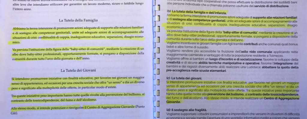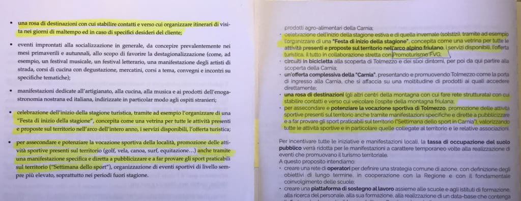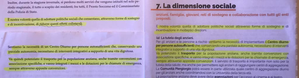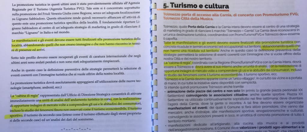 Copiare le belle idee non è una cosa negativa, anzi, se ci sono buone pratiche alle quali ispirarsi è positivo, ma qui non si riutilizzano idee, bensì intere frasi e lascia ancor più esterrefatti che il “copia e incolla” sia preso dal programma di una città così diversa da quella di Tolmezzo, a meno che non si voglia far credere che bisogni, problemi e opportunità di Tolmezzo e Lignano siano identiche.