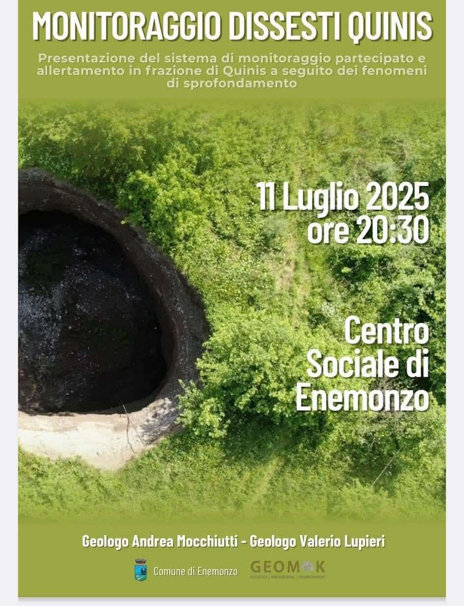 “Da tempo l’area di Quinis di Enemonzo è interessata da un fenomeno erosivo sotterraneo che provoca cedimenti e avvallamenti, ponendo il problema di affrontare e risolvere la sicurezza di abitazioni, esercizi commerciali e viabilità. La zona, monitorata da molti anni, è classificata P4, che evidenzia una precarietà elevata. Il tavolo tecnico, avviato e coordinato dal prefetto di Udine, ha messo in evidenza l’individuazione di misure utili a garantire la sicurezza, avviando azioni che possano approfondire la sostenibilità dell’attuale situazione. Per questo abbiamo inserito in assestamento una posta di 250mila euro di spesa corrente”.