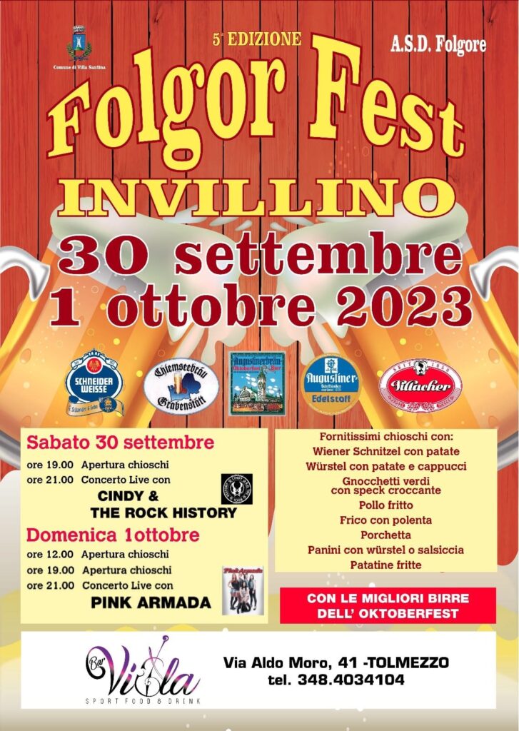 Sabato 30 settembre e domenica 1° ottobre ritorna a Invillino di Villa Santina la “Folgor Fest”, organizzata per la quinta volta dall’ASD Folgore.