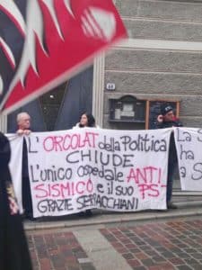Lungo il corteo storico che ha accompagnato in Duomo i partecipanti si sono fatti vedere e sentire ancora una volta gli attivisti dei Comitati gemonesi in difesa dell’Ospedale San Michele; i militanti si sono schierati lungo via Bini come negli anni scorsi per protestare contro l’iniqua Legge di riforma sanitaria targata Serracchiani/Telesca, “che ha depotenziato il Gemonese, trasformando il San Michele da Ospedale per acuti a Presidio per la salute”. La loro richiesta è stata quella di riaprire questa importante struttura sanitaria così come lo era in passato, “non per spirito di campanile, ma bensì perchè necessaria alla popolazione del territorio”.