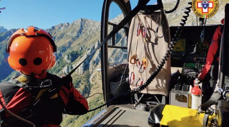 La donna è stata imbracata e verricellata a bordo con il triangolo di evacuazione e condotta incolume a valle.