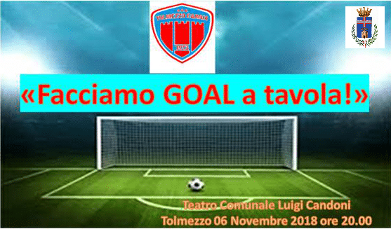 Martedì 6 novembre, con inizio alle ore 20.00 al Teatro L.Candoni di Tolmezzo, avrà luogo “Facciamo goal a tavola”, l’iniziativa promossa dall’Asd Tolmezzo Carnia a completamento ed integrazione del progetto tecnico motorio in favore dei propri tesserati.