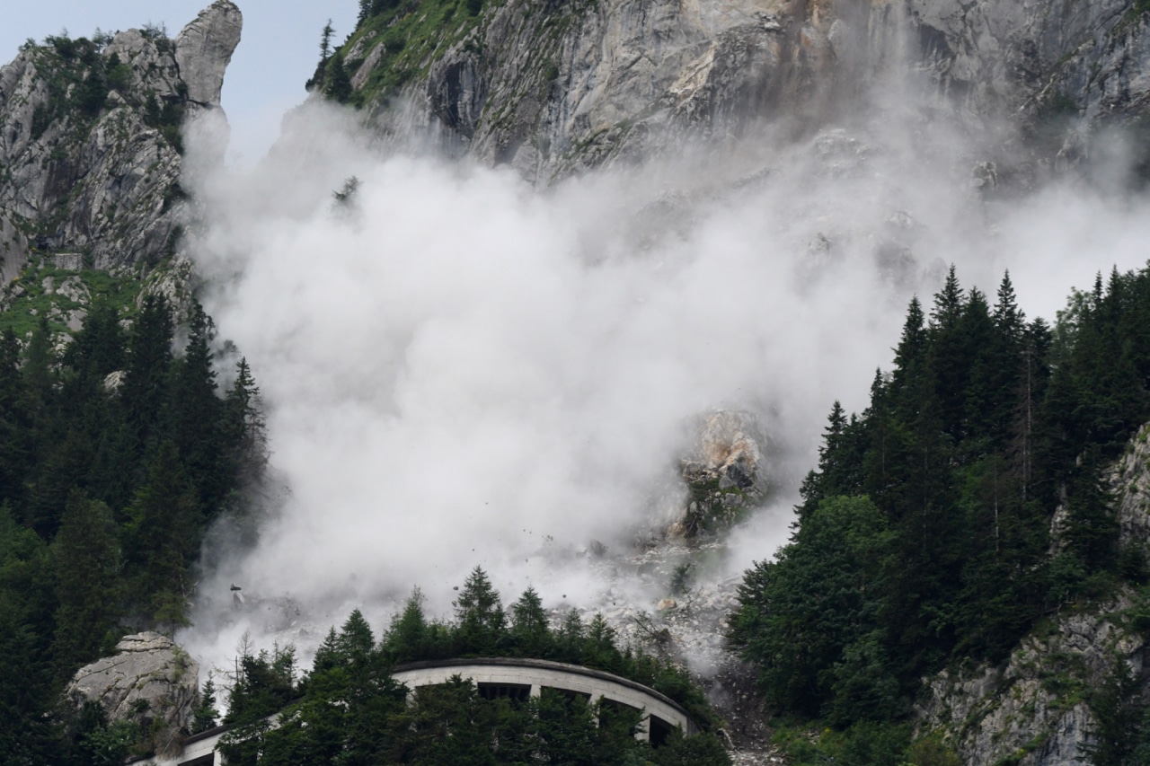 Anas ha eseguito la prima demolizione degli ammassi di roccia instabile lungo la statale 52 bis “Carnica” al Passo di Monte Croce Carnico a Paluzza. La massa demolita era costituita da uno sperone di roccia di 500 metri cubi, separato dal versante della montagna da una frattura verticale larga alcune decine di centimetri. La demolizione è stata eseguita con l’utilizzo microcariche di esplosivo. Come previsto, l’abbattimento di questo sperone ha comportato anche la caduta di altri 200-300 metri cubi di versante roccioso ad esso collegati per un totale di circa 800 metri cubi di roccia.