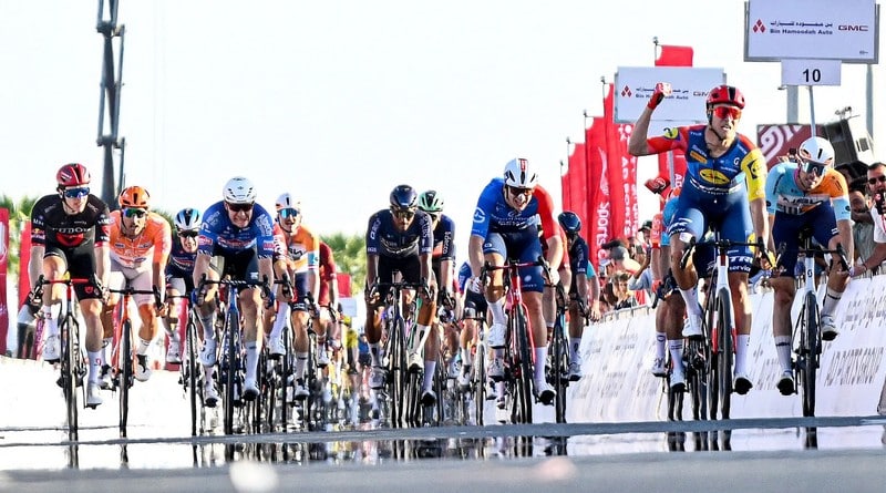 L’arrivo in volata è stato tutt’altro che scontato: infatti la fuga a quattro composta da Patrick Gamper, Stefan De Bod, Lorenzo Milesi e Georg Steinhauser ha resistito al ritorno del gruppo fino all’ultimo chilometro. Alla vigilia della tappa di Dubai, ancora una volta adatta ai velocisti, la classifica generale resta invariata, con Antonio Tiberi che conserva la Maglia Rossa.