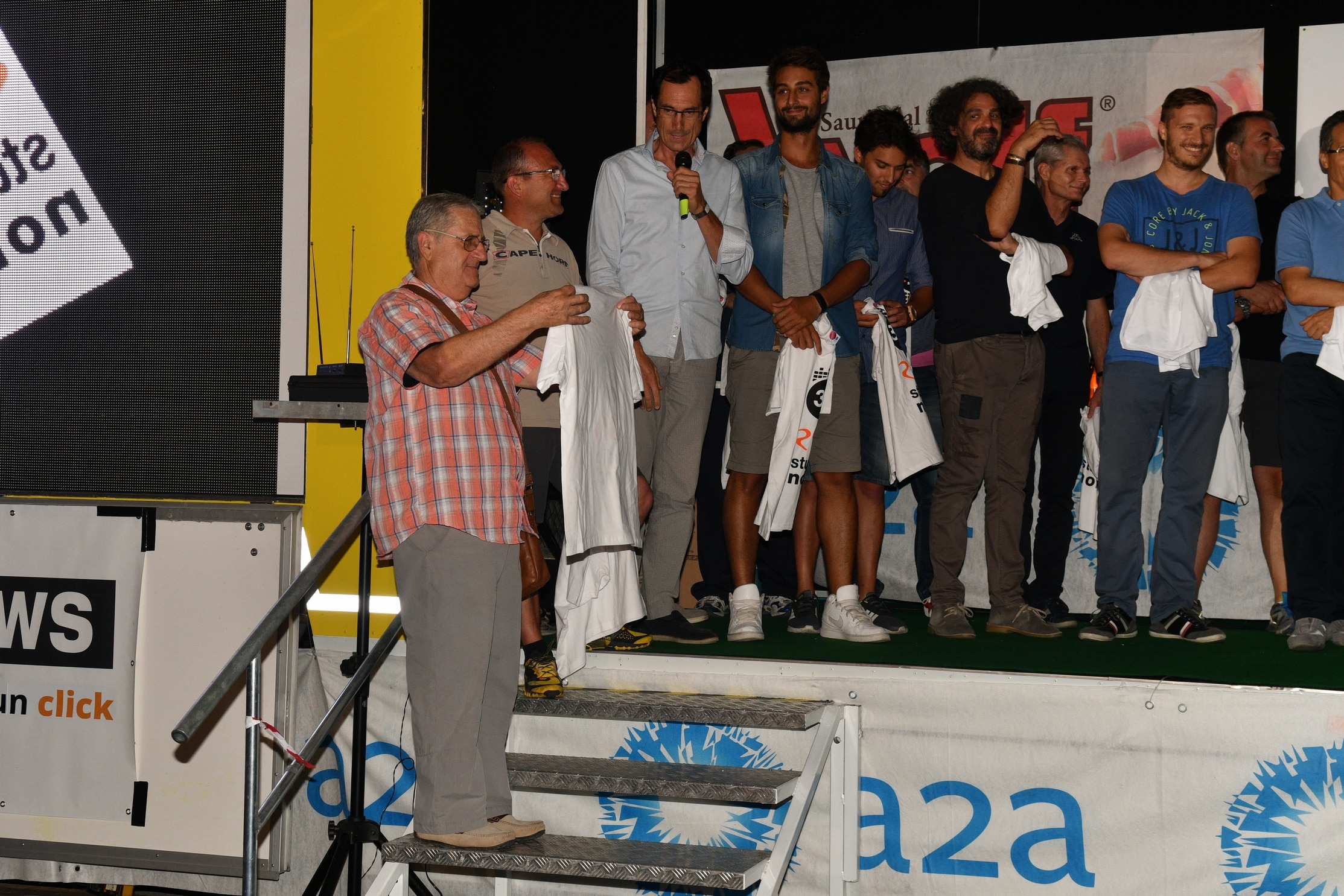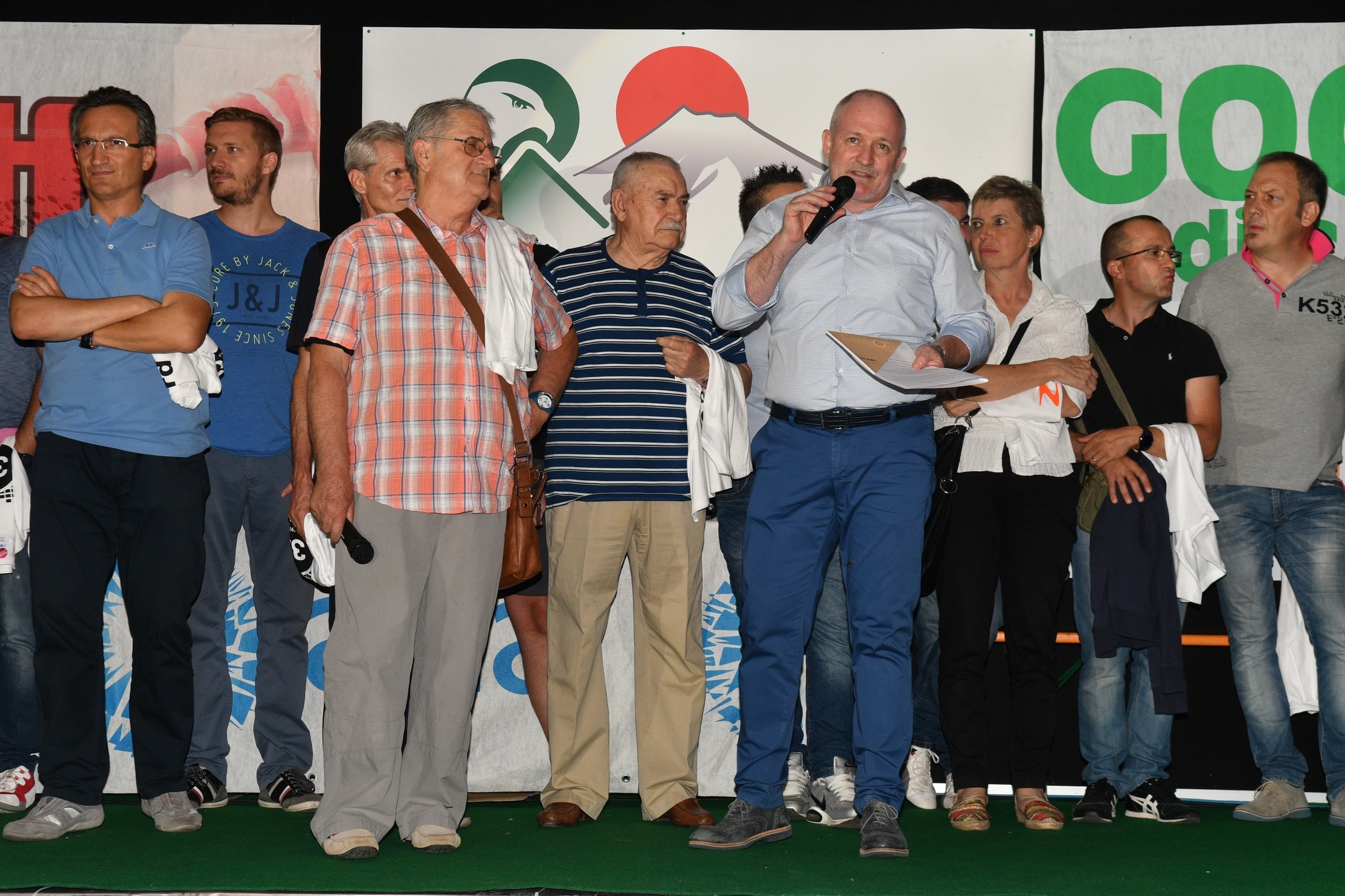 In Piazza Centa, sul palco adibito in occasione della granfondo ciclistica Carnia Classic Fuji-Zoncolan, si sono ritrovati tanti speaker e giornalisti, passati e attuali, tutti protagonisti di un’avventura per certi versi unica.