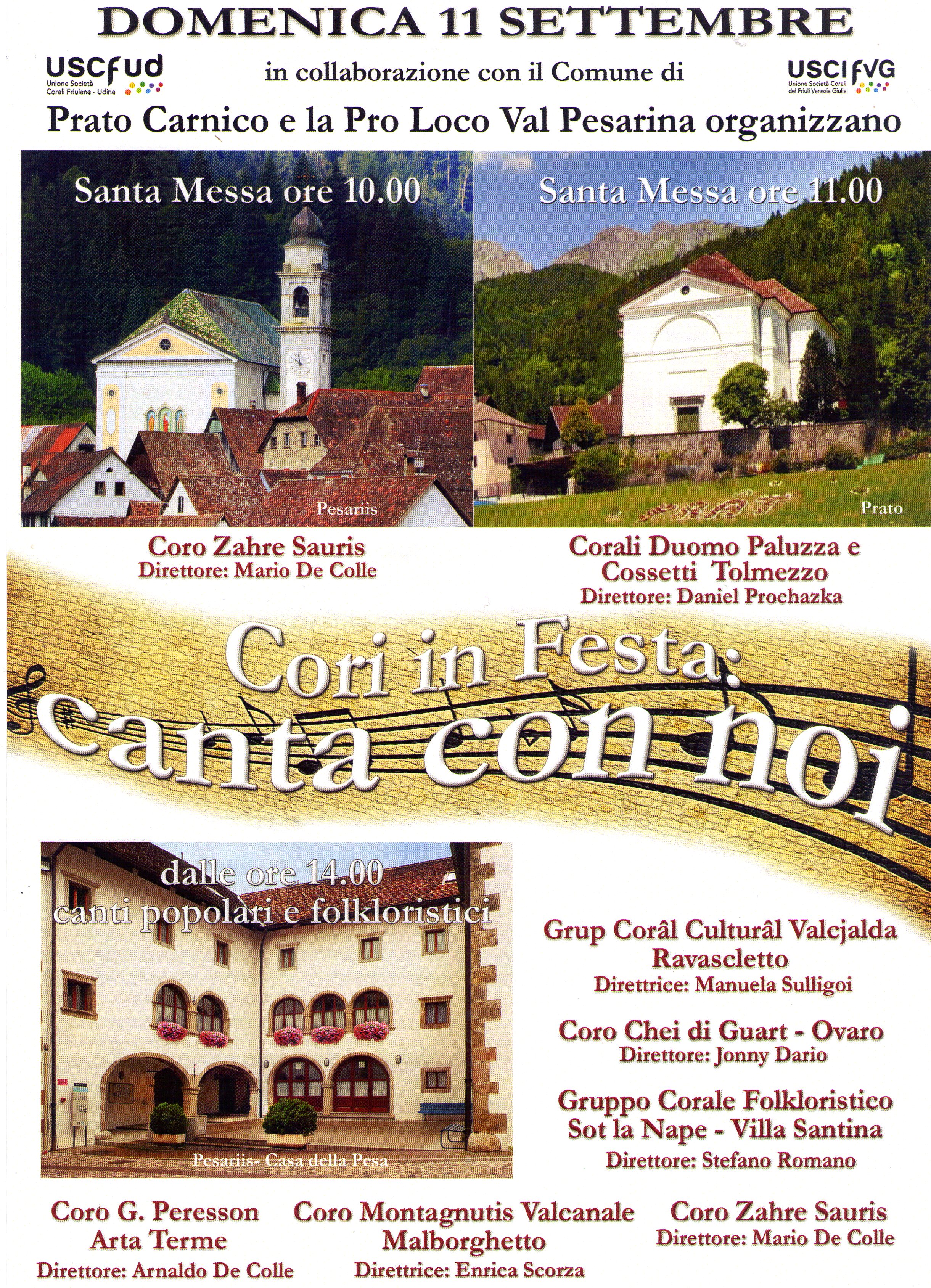 E sarà proprio Pesariis ad fare da quinta a Arlois e Fasois – Sagra del Fagiolo nella Valle del tempo. Si inizierà il pomeriggio del sabato con visite guidate al percorso monumentale degli orologi e degustazione di piatti tipici a base di fagioli in piazza della Canonica e musica folk. La domenica, per tutta la giornata, mercatino di prodotti tipici, musica e degustazione di piatti a base di fagioli, tra cui alcuni tradizionali (come la minestra di orzo e fagioli) e altri veramente inusuali, come la crostata con marmellata di fagioli e il gelato al fagiolo. Come da tradizione, si potranno acquistare, fino ad esaurimento scorte, i fagioli locali coltivati dalle famiglie della valle. A fare da corollario, iniziative per i bambini e, per gli adulti, Laboratori del Gusto.