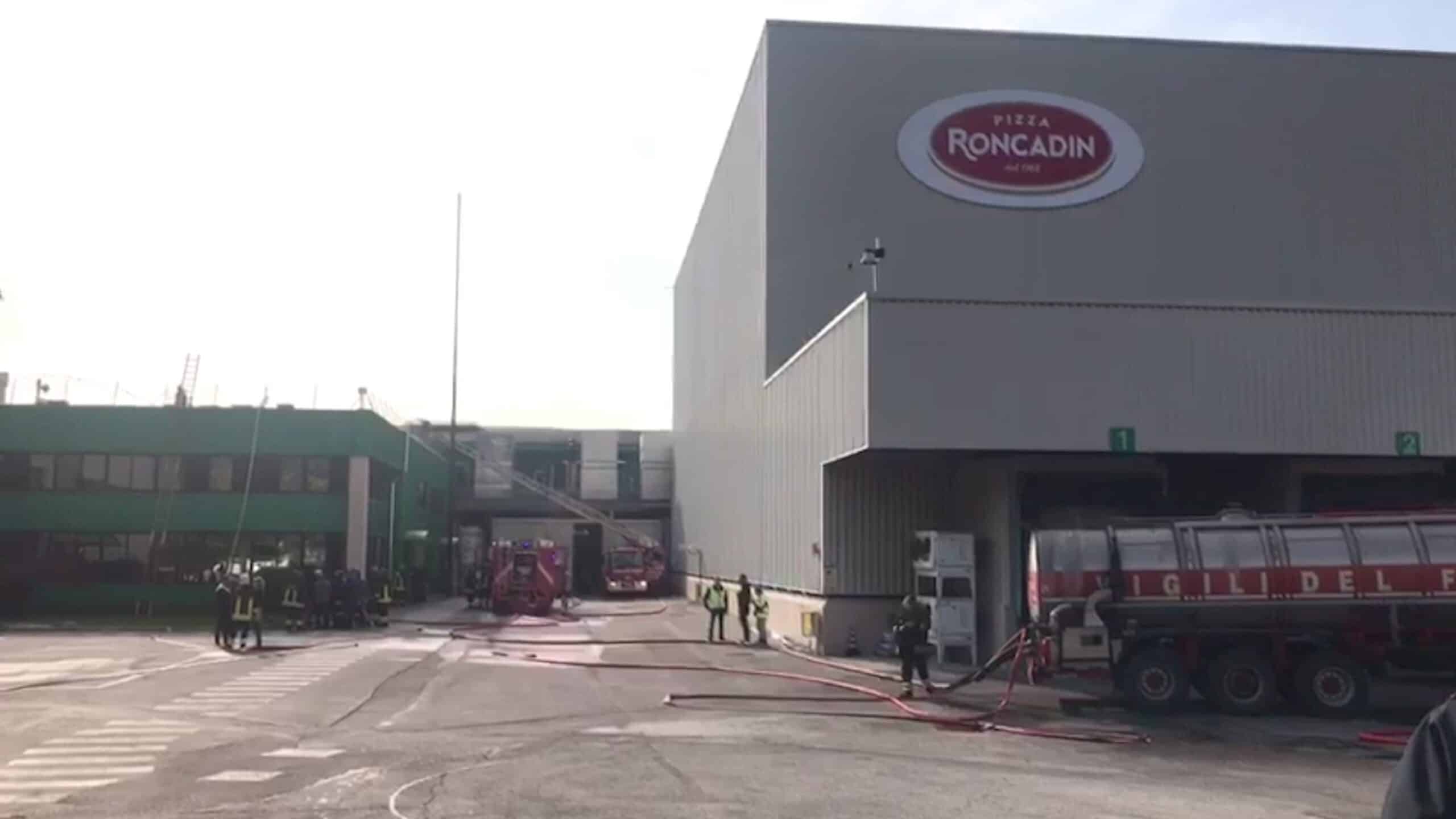 Un vasto incendio è divampato intorno alle 5.30 di oggi alla Roncadin di Meduno (Pordenone), colosso mondiale nel settore delle pizze surgelate che produce quasi mezzo milione di pizze al giorno e offre lavoro a circa 500 persone.