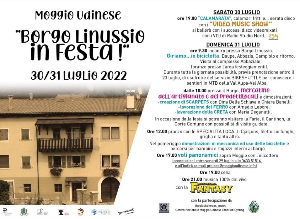 Ultimo fine settimana di mese a Moggio dedicato a “Borgo Linussio in festa!”, promosso dalla Pro Loco Moggese.