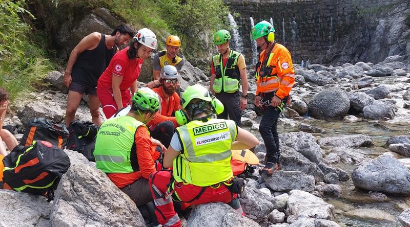 Le squadre dei soccorritori si sono portate a piedi sul posto assieme ad un medico del Soccorso Alpino e ad un infermiere dell’ambulanza con tutti i materiali necessari per stabilizzarlo e trasportarlo fuori in barella, essendo in un primo tempo l’elisoccorso impegnato. Mentre si svolgevano le operazioni sul posto, l’elicottero si è fortunatamente liberato per venire a recuperare l’infortunato.Operazioni di recupero comunque non semplici, dato che la posizione in cui si trovava la persona da soccorrere era in una gola. La verricellata per calare l’equipe tecnico sanitaria e il conseguente recupero a bordo del ferito sono state operazioni delicate. L’uomo è stato poi portato a Udine.