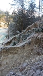 sono piegate e la terra continua a cedere nel corso d’acqua sottostante.
