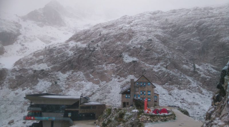 Un po’ in ritardo rispetto alle previsioni ma l’ondata di maltempo è arrivata sul Friuli. Piogge, temporali, fulmini e vento forte per tutta la notte; prime nevicate in quota (nella foto il Rifugio Lambertenghi Romanin in Carnia).