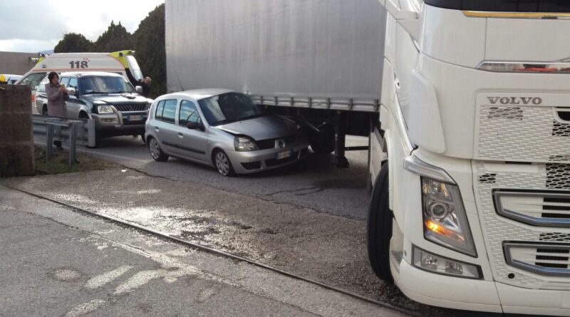 Per cause in corso di accertamento da parte delle forze dell’ordine una vettura Renault Clio è finita con la parte anteriore sinistra sotto il rimorchio di un camion il cui conducente stava facendo manovra per entrare nel cortile di una officina di Gemona.