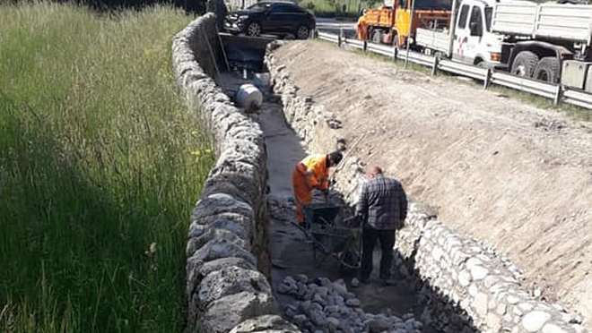 In questo tratto di Ospedaletto è in corso la sistemazione della muratura di ponente, l’ultimo degli interventi iniziati qualche mese fa.