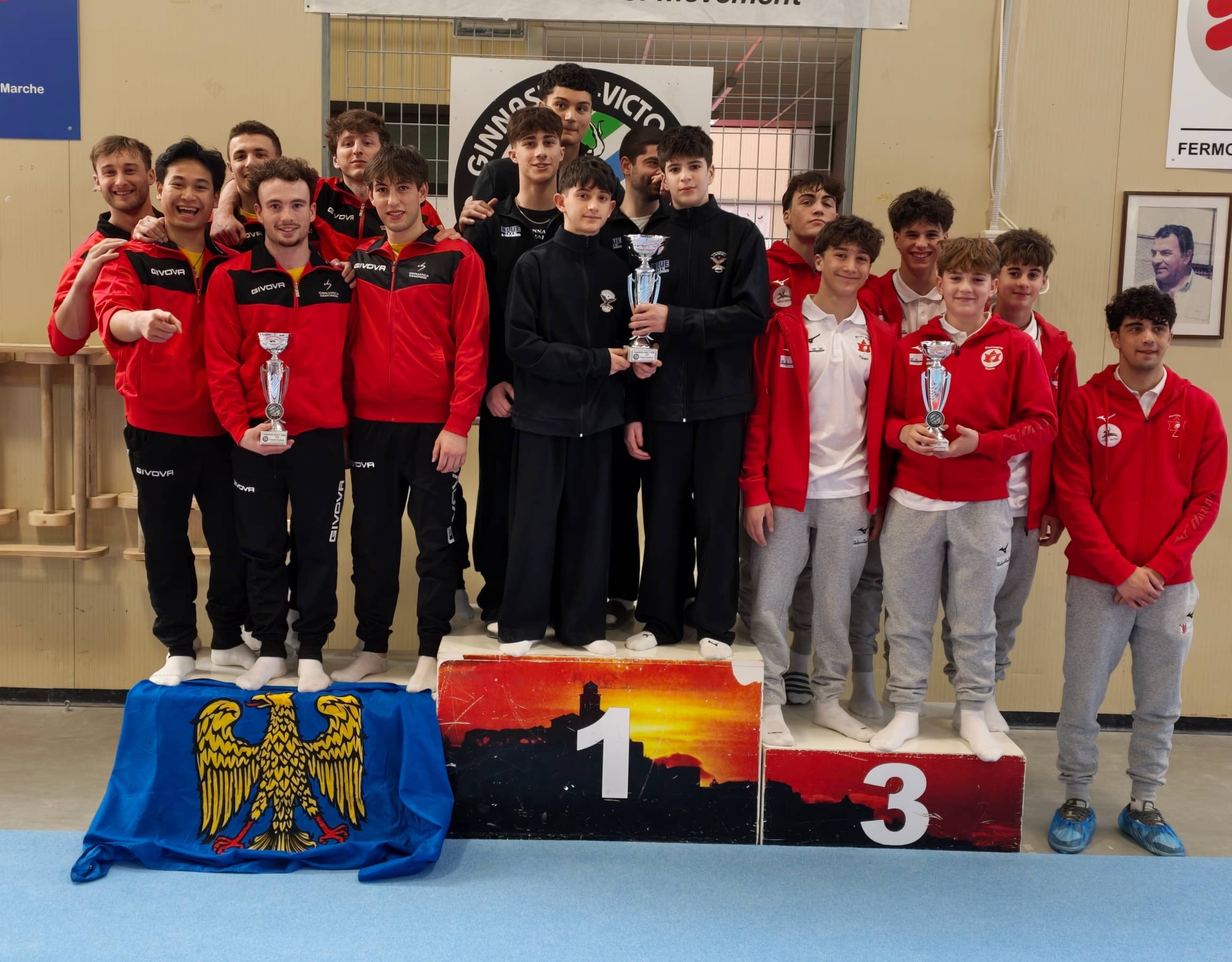 La squadra, guidata dall’allenatore David Placereani, ha schierato gli atleti locali Nicholas Goi, Matteo Petris e Riccardo Bertossi, insieme a Sovann Vitellozzi di Firenze, Mattia Sanguigni di Ancona e Tommaso Kovacic di Trieste. Il gruppo ha completato le sei specialità previste dal programma tecnico: corpo libero, cavallo con maniglie, anelli, volteggio, parallele e sbarra.