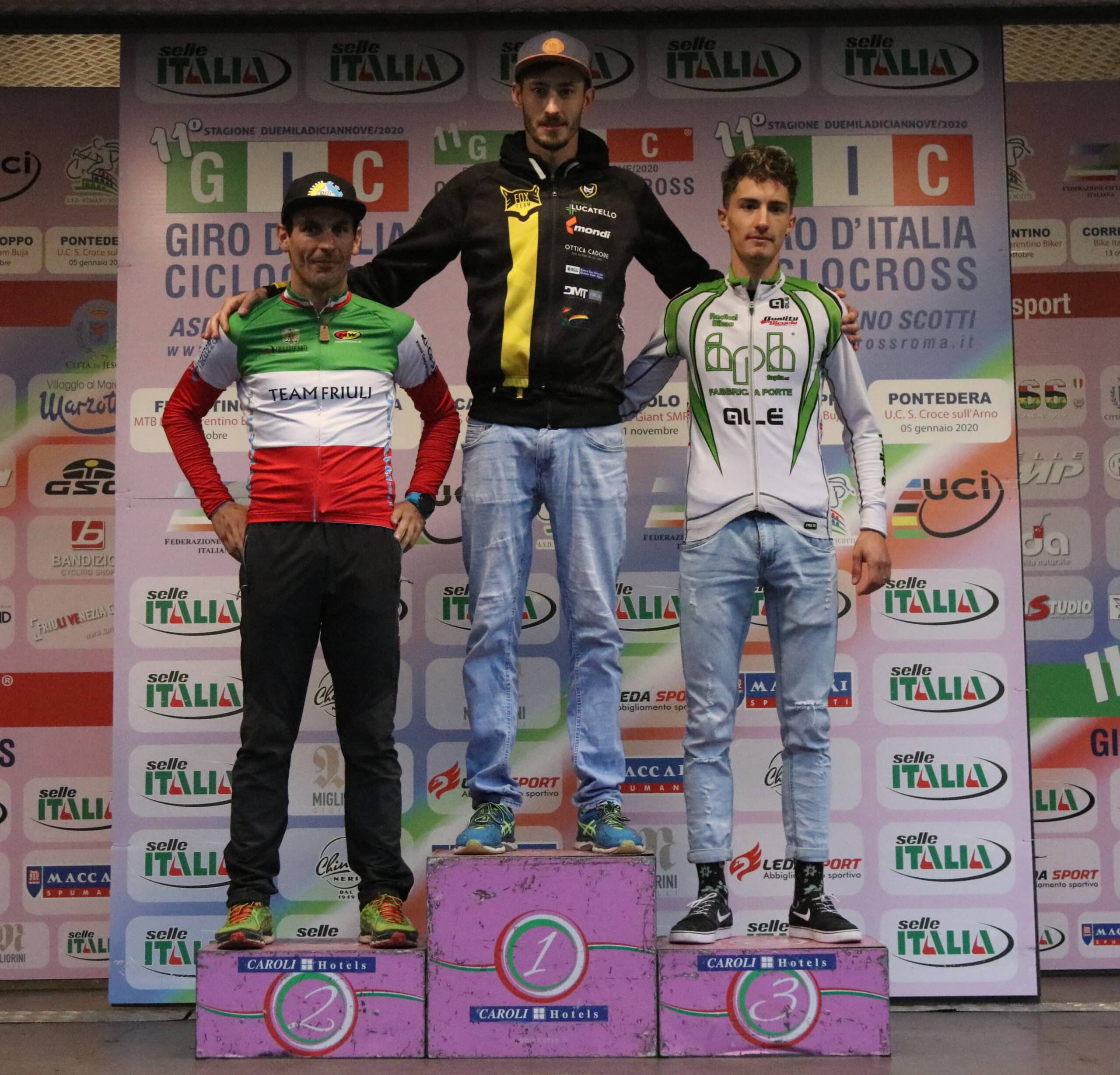 Completa il podio Cristian Calligaro (Ktm Alchemist Selle SMP Dama) mentre resta ampiamente fuori dai giochi la maglia rosa uscente Daniel Cassol (DP 66 Giant SMP), 18° al traguardo e mai della partita. Davvero una giornata no per lui.