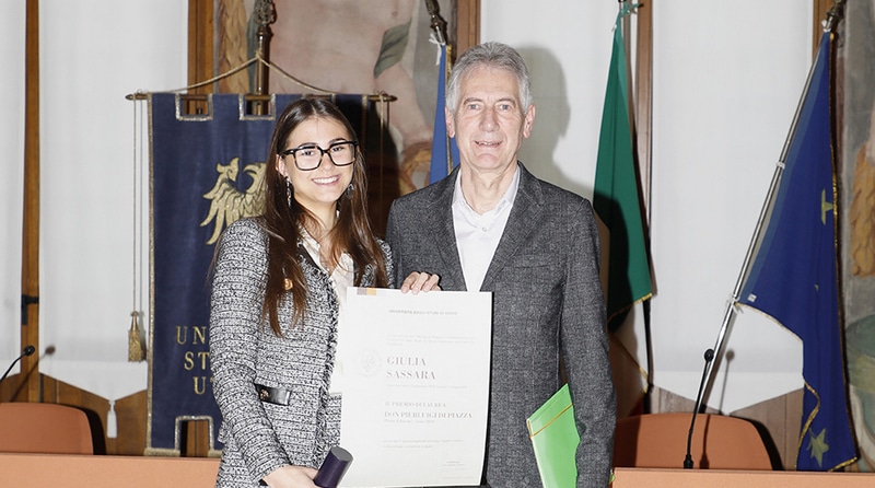 Valeria Filì, docente di diritto del lavoro del Dipartimento di Scienze giuridiche, ha spiegato che «la tesi di laurea di Giulia Sassara si è distinta, oltre che per il livello di approfondimento e la chiarezza espositiva, anche per l’argomento trattato e cioè quello della giusta retribuzione e della povertà nel lavoro e nonostante il lavoro, tema molto caro a don Di Piazza che ha dedicato la sua vita ai poveri».