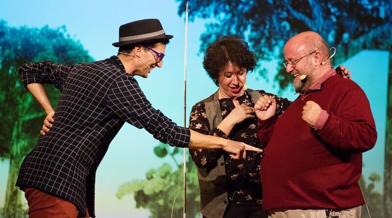Rap o villotte? Zorutti o Pasolini? Filastrocche del passato o poesie di oggi? In “Orizzonti Verticali a teatro” musica, immagini, poesie, dialoghi si fondono, per dichiarare come le radici culturali di una terra, benché necessarie, non possano inaridirsi, ma debbano piuttosto innestare nuove idee e portare a nuovi frutti, trasformandosi in una molla capace di scattare verso il futuro. Le canzoni suonate e cantate dal vivo da Doro Gjat, i suoi dialoghi con Angelo Floramo, abile sarto capace di cucire riflessioni e sorrisi, si mescolano con le poesie di autori friulani di ieri e di oggi, lette da Carlotta Del Bianco e dallo stesso Angelo Floramo. Tra queste, una poesia originale di Maurizio Mattiuzza, donata allo spettacolo in forma inedita e musicata dallo stesso Doro Gjat. Una lucida e struggente testimonianza di come si possa guardare a questo lembo di nord-est come a una terra dagli orizzonti illimitati, capace di trasformare la verticalità di ogni ostacolo in una straordinaria occasione di slancio verso il futuro.