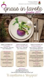 Dopo la semina dei gnaus, avvenuta ad agosto, la terra ha regalato delle splendide rape che sono pronte ora per essere trasformate da abili cuochi in accattivanti ed originali piatti da gustare assieme a del buon vino in occasione dell’edizione 2017 di “Gnaus in tavola“.