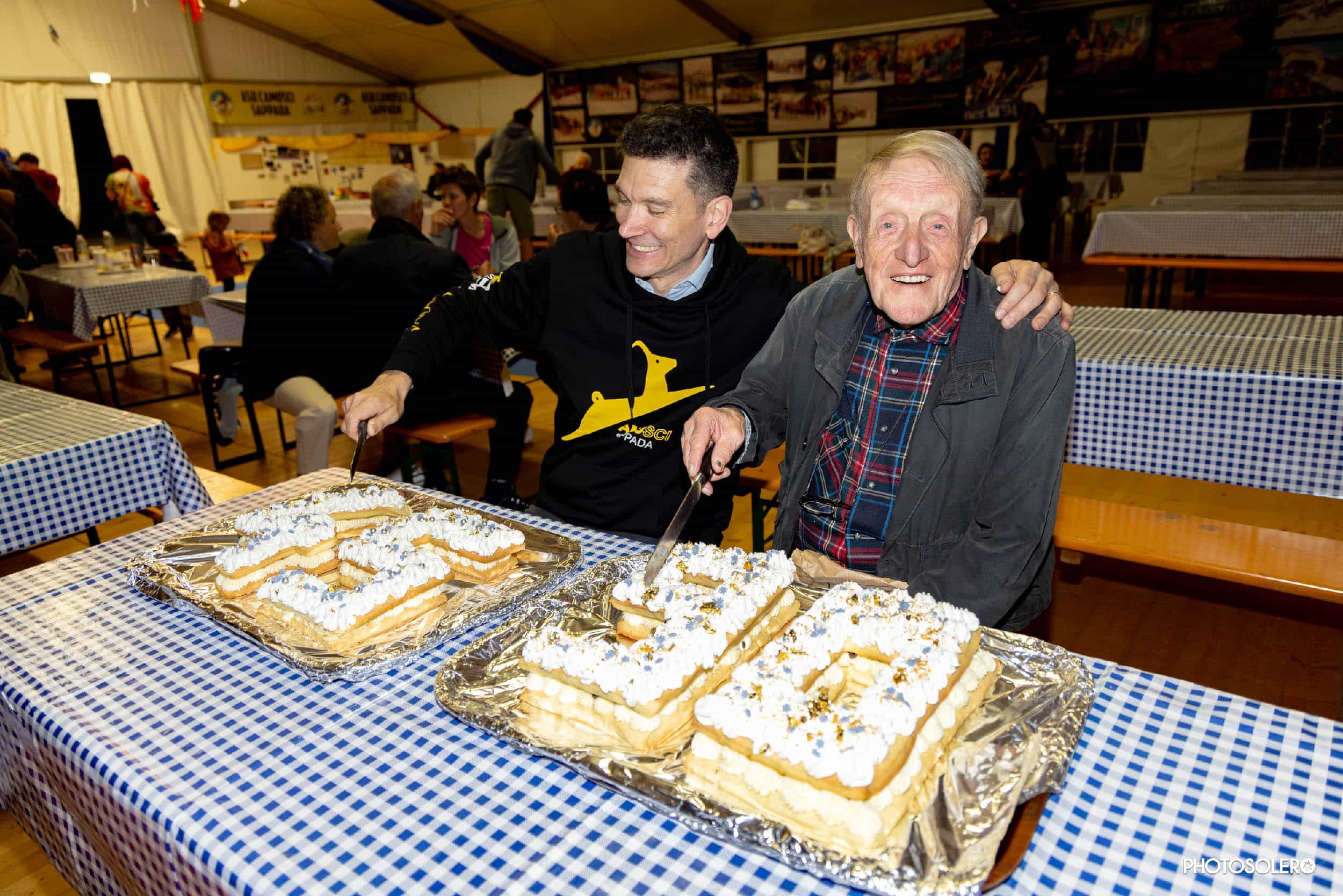 Ed è stata una festa nella festa: perché oltre a celebrare i 45 anni della loro storia, i Camosci hanno celebrato anche i 90 anni di una persona fondamentale per questa storia: il socio fondatore, il presidente ma soprattutto l’allenatore Eliseo Sartor, tecnico che ha fatto crescere generazioni di atleti e che per lo sci di fondo a Sappada è stato, e continua a essere, un patriarca. A fare festa a Eliseo, anche tre suoi colleghi di un tempo: Benito Moriconi (arrivato da Bormio), Demetrio Rela (da Asiago) e Angelo Genuin (da Falcade).